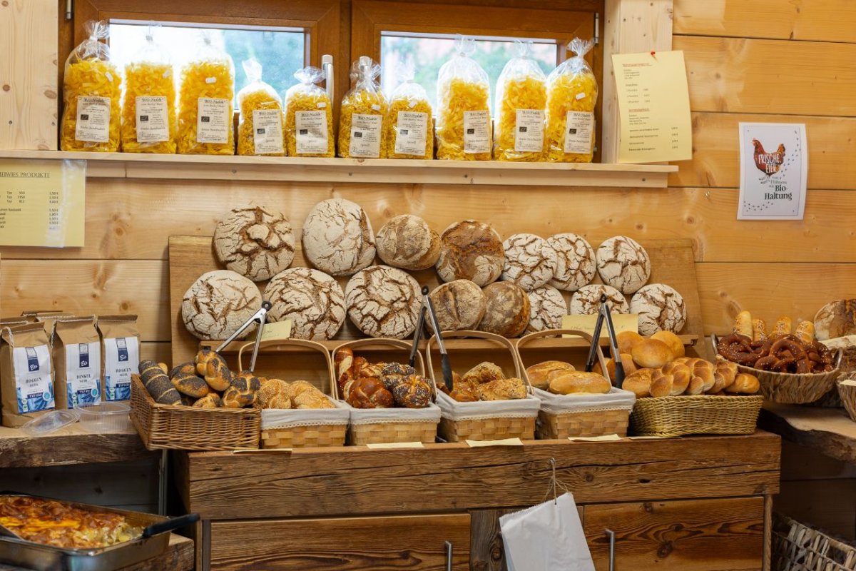 Der Hofladen ist so zusammengestellt, dass Sie zentrale Lebensmittel für den Alltag direkt vom Hof und aus der Region beziehen können. Viele unserer Kundinnen und Kunden verbinden ihren Einkauf mit festen Gewohnheiten, etwa dem Wochenendeinkauf oder dem Samstag-Backtag.