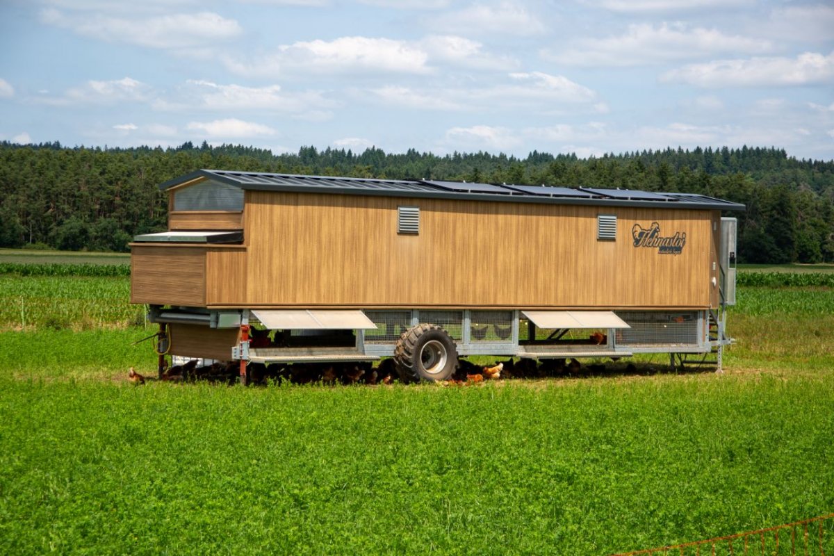 Unsere Hühner werden auf einem mobilem Hühnerstall gehalten und artgerecht versorgt. Sie haben ausreichend Platz, Tageslicht und strukturierte Bereiche. Die Eier werden direkt im Hofladen angeboten und gehören zu den wichtigsten Produkten unserer eigenen Landwirtschaft.